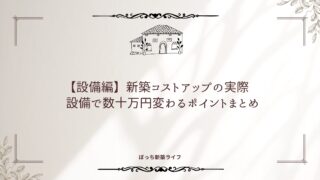 実体験記 【設備編】新築コストアップの実際|設備で数十万円変わるポイントまとめ 新築注文住宅で予算が膨らみやすい「設備増額」の実例を紹介。キッチン・浴室・トイレ・空調・配線で数十万円変わるポイントを体験談ベースで解説します。 2026.01.04 実体験記