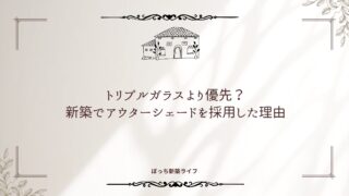 基礎知識 トリプルガラスより優先?新築でアウターシェードを採用した理由 トリプルガラスではなくアウターシェードを採用した理由を解説。外側で日射を遮る仕組みや、遮熱ガラスとの組み合わせ、コスト面から考えた新築の日射対策をまとめました。 2026.03.04 基礎知識
